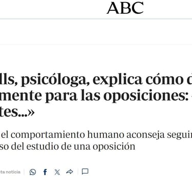 Además de la intervención psicológica, también comparto contenido sobre la psicología del opositor a través de redes sociales y soy creadora del podcast “Mente Opositora”, un espacio en el que abordo temas como la motivación, los bloqueos en el estudio, la gestión del estrés o el miedo al examen.